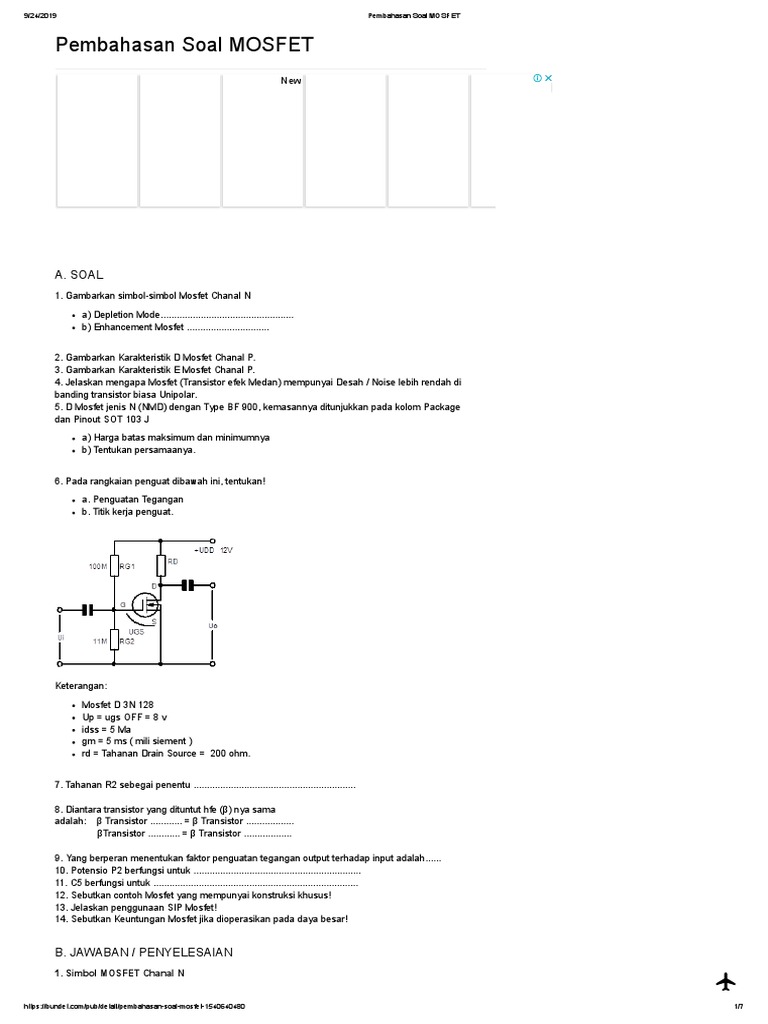 / Soal Dan Jawaban Tentang Fet Dan Mosfet : Soal Dan Penyelesaian 408rj53zdvlx : Ada satu jenis transistor lain yang dinamakan fet (field efect transistor).